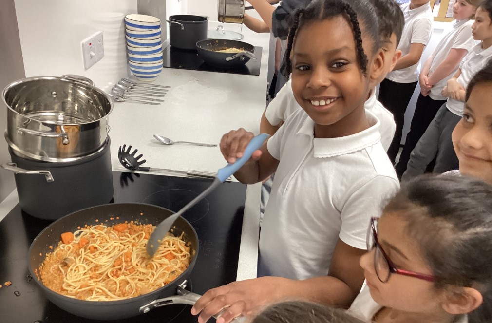 Today, Year 3 put on their chef hats and tied up their apron strings ready to follow a recipe in The Hob! We put our cutting skills to the test by using the ‘claw grip’ and ‘bridge hold’ method for chopping a range of vegetables for our vegetarian Bolognese!
